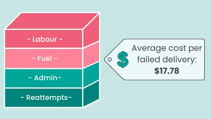 Direct expenses, including labour for re-attempts, customer service handling, and logistical disruption, add up to an average $17.78 per failed package (even a 5% failure rate can lead to losses of nearly $200,000 annually for a company handling 140,000 orders!).