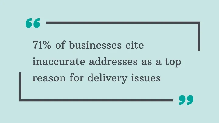In retail specifically, 71% of businesses cite inaccurate addresses as a top reason for delivery issues. These errors not only delay packages but also increase operational costs and strain customer service resources.