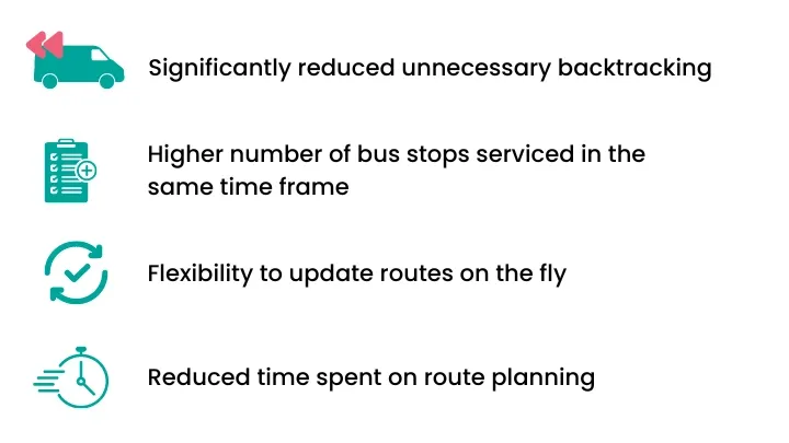 Every mile traveled by field operatives now serves a purpose, contributing to a notable increase in the number of bus stops serviced within a given timeframe.