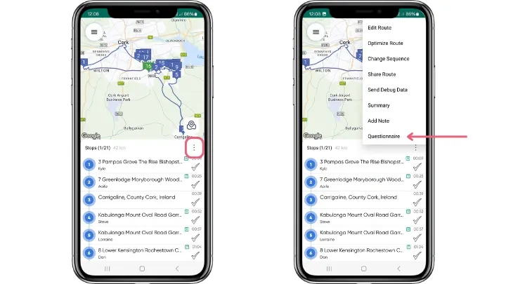 - Route Questionnaire – The driver completes the questionnaire at the start or end of their route.