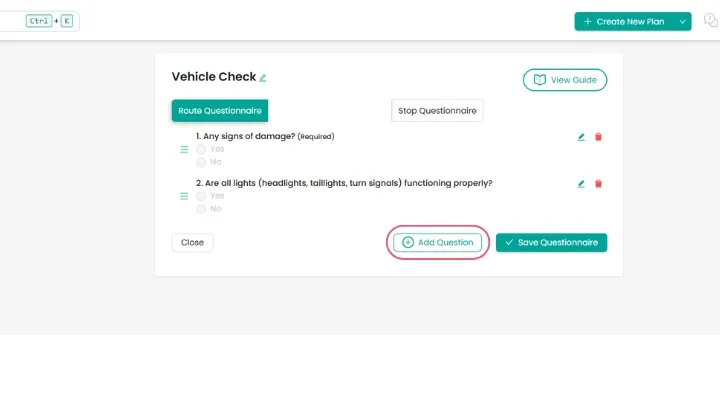 If your drivers need to conduct a daily vehicle inspection before starting their route, set up a vehicle check questionnaire with questions like: