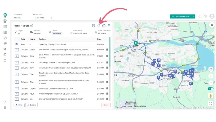 Navigate to the route planning screen and underneath the calendar you will see ‘Routes sent to drivers’. Click the button ‘view route’.