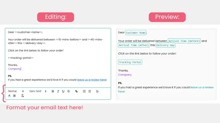 - Inserting clickable hyperlinks (e.g., linking to your Google review page or customer support site)