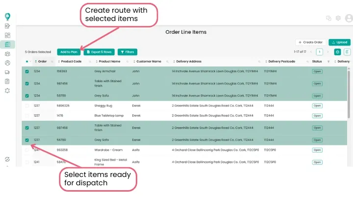 - Add them to a route for delivery.